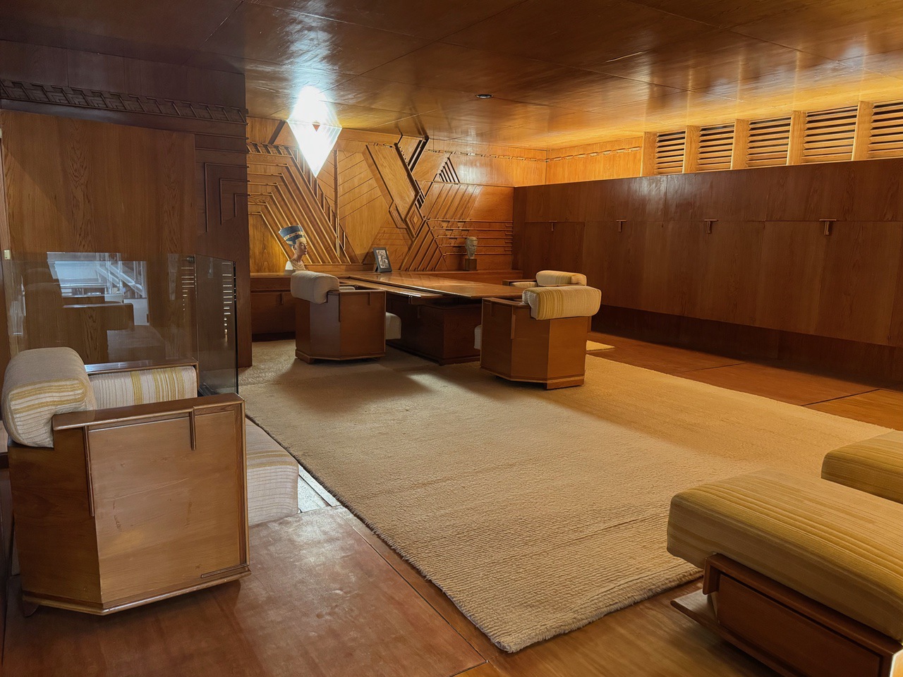 Kaufmann Office – Constructed in 1935–1937, made from cypress plywood, this office is the only complete interior designed by architect Frank Lloyd Wright on permanent display outside the USA. Pittsburgh retail magnate Edgar J Kaufmann Sr. commissioned Wright to design this room for a Kaufmann’s department store. He was persuaded to adopt the architect’s modern style by his son, who had spent six months as Wright’s apprentice. Edgar Kaufmann Jr. donated the office to the V&A in 1974 after his father’s death, believing that ‘Wright’s work could not have found a safer or a more suitable haven.’