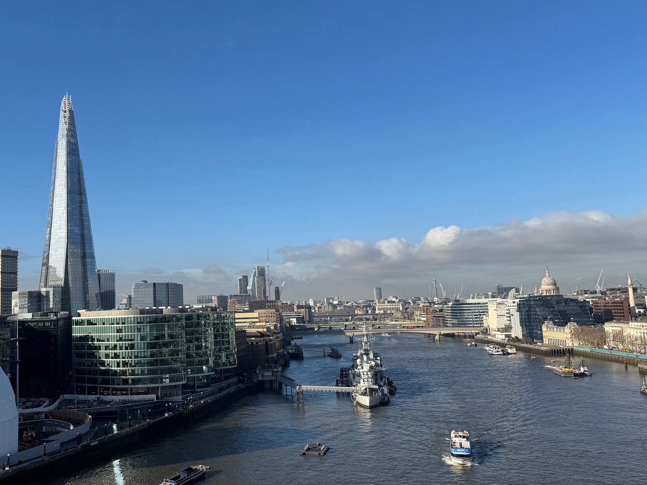 Another work day for Larry. On a nice sunny day, Eileen took off to see a number of sights: Tower Bridge, The Shard, and St. Paul’s Cathedral, all by underground or walking.